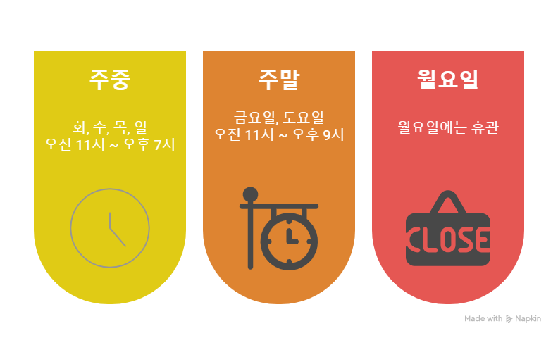| 화, 수, 목, 일 | 오전 11시 ~ 오후 7시 |