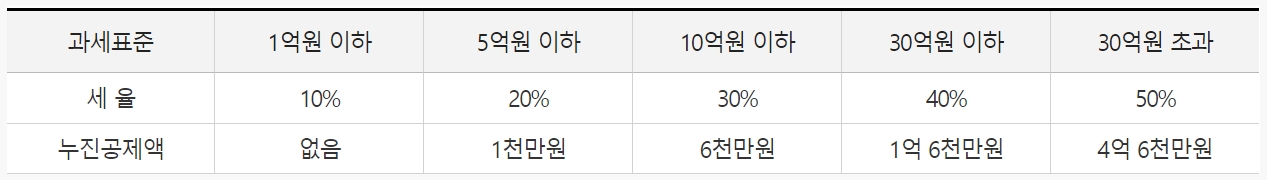 - 기초공제 : 2억 원