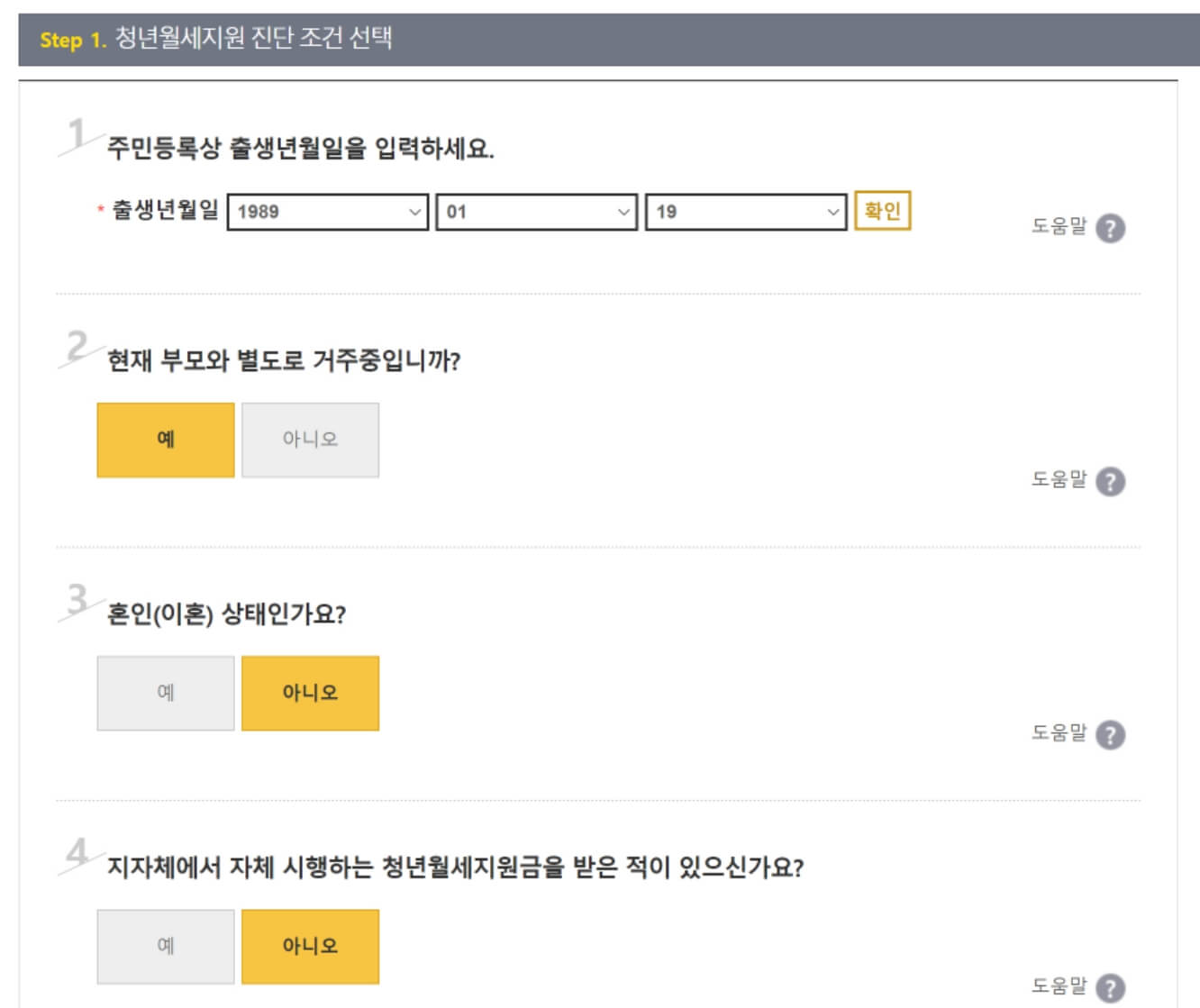 마이홈포털 - 청년월세지원 자가진단