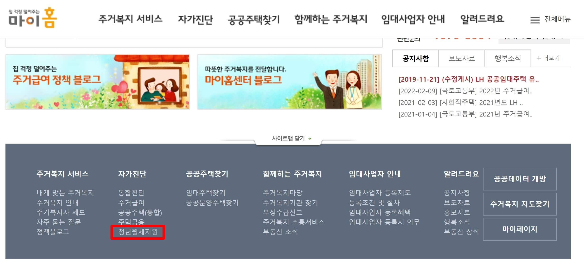 신청하기 전 「마이홈」 이나 「복지로」 에서 자가진단을 해보면 조건에 부합하는지 확인 가능합니다.
