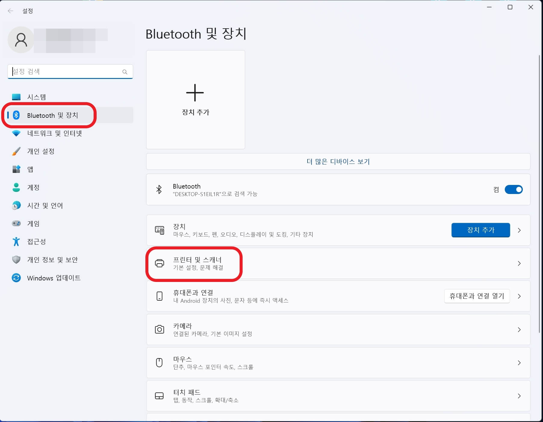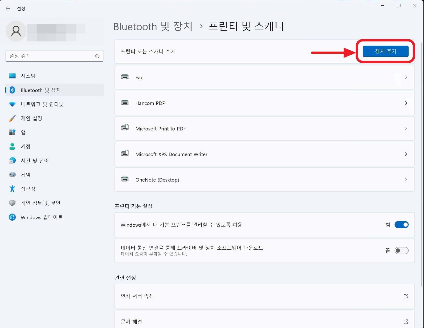 '프린터 및 스캐너'를 클릭합니다.